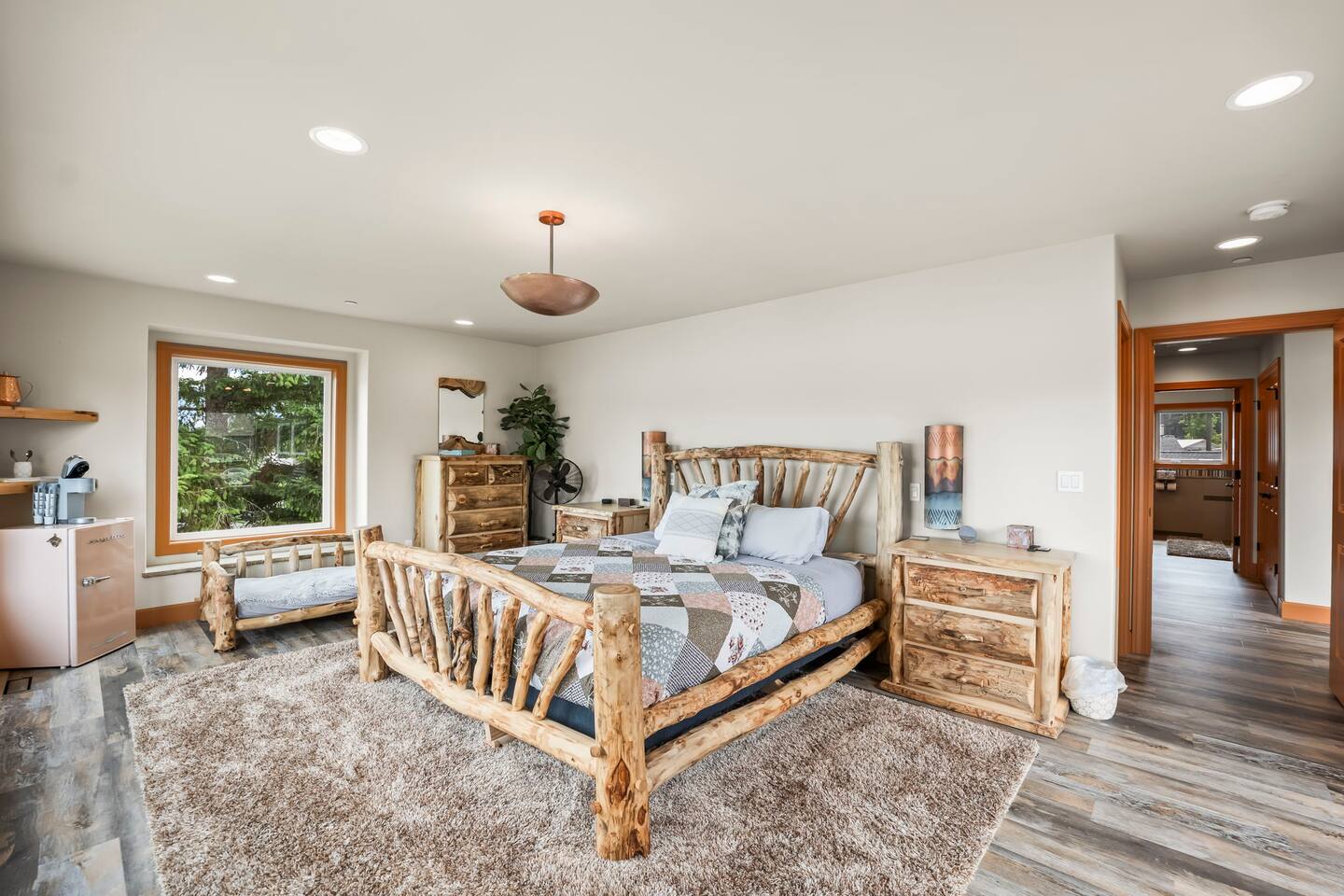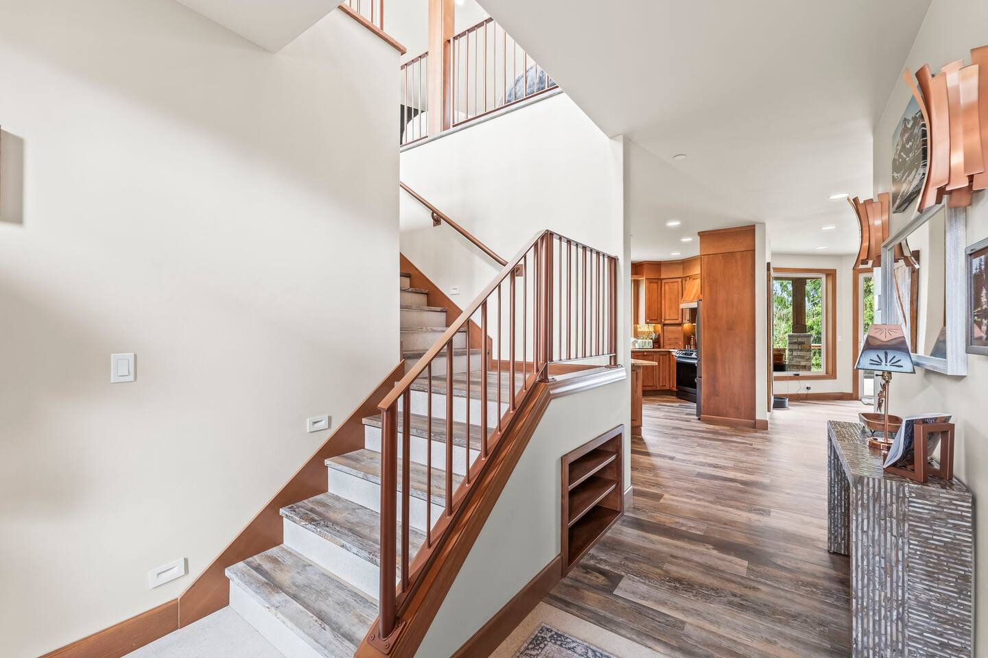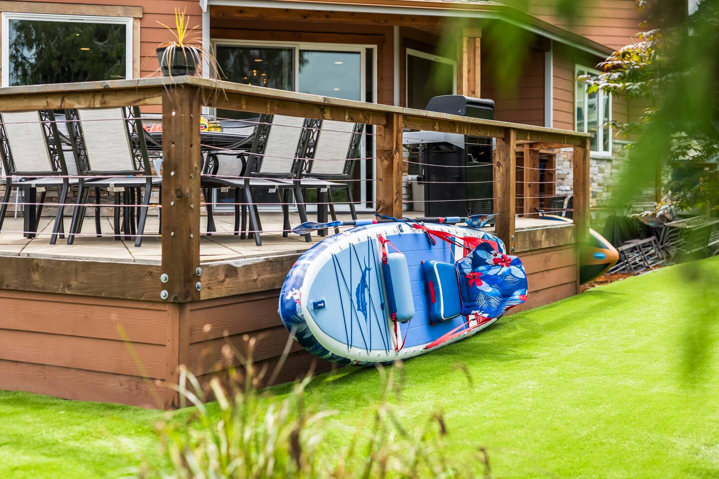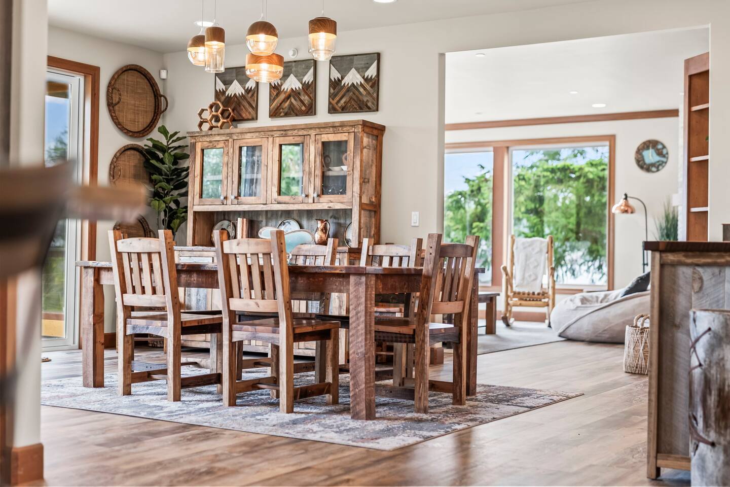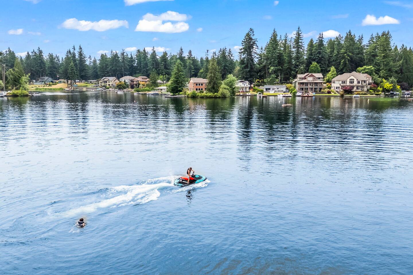 Relax and recharge in this thoughtfully crafted 2022 lodge where nature, luxury, and functionality come together. • 3 California King Suites – Spacious bedrooms with ensuite baths and custom touches • Murphy Bed in the Loft – Easily folds down for extra sleeping space • Lake-View Deck + Private Dock – Step out for coffee, a paddle, or just to soak in the view • Gas Fireplaces – One in the main living area and another in the primary suite for cozy evenings • 7 Smart TVs – Stream your favorites with ease in every room • Handcrafted Furniture + Local Art – Featuring copper accents inspired by the area's hawks • Fully Equipped Chef’s Kitchen – Stainless steel appliances, island seating, and all essentials • Second Kitchenette Upstairs – Great for morning coffee or evening drinks • Individual Coffee Stations – One in each bedroom for extra convenience • Central A/C + Whole-House Generator – Comfort and peace of mind in all seasons • Washer & Dryer on Each Floor – Ideal for longer or multi-family stays • Free Parking for 4 Vehicles – Includes easy access driveway and ramp entry • Wheelchair Friendly Home – Wider doorways, ramp, no-step entry, and walk-in shower Family-Ready Features • Grill Station – Fire up the BBQ for a lakeside feast • Lake Gear – Launch your paddle board or kayak from the private dock • Indoor/Outdoor Living – Designed for year-round connection with nature Wheel Chair Friendly • Main floor is completely wheelchair friendly, including the front entry which has no steps • The main floor bedroom and bathroom has a wheelchair friendly shower/tub • There are ramps to get to the backyard in a wheelchair as well BED CONFIGURATION • Bedroom 1 - California King size • Bedroom 2 - California King size • Bedroom 3 - California King size • Loft - Queen size and 2 toddler beds ☀ LAKE ACCESS & LOCAL ADVENTURES ☀ • Right on Lake Sawyer – Swim, paddle, or fish just steps from your deck • Black Diamond Bakery – A beloved local gem for breakfast or pies • Flaming Geyser State Park – Great for tubing, picnicking, or a scenic hike • Crystal Mountain & Mt. Rainier – Easy day trips for skiing, hiking, and alpine views