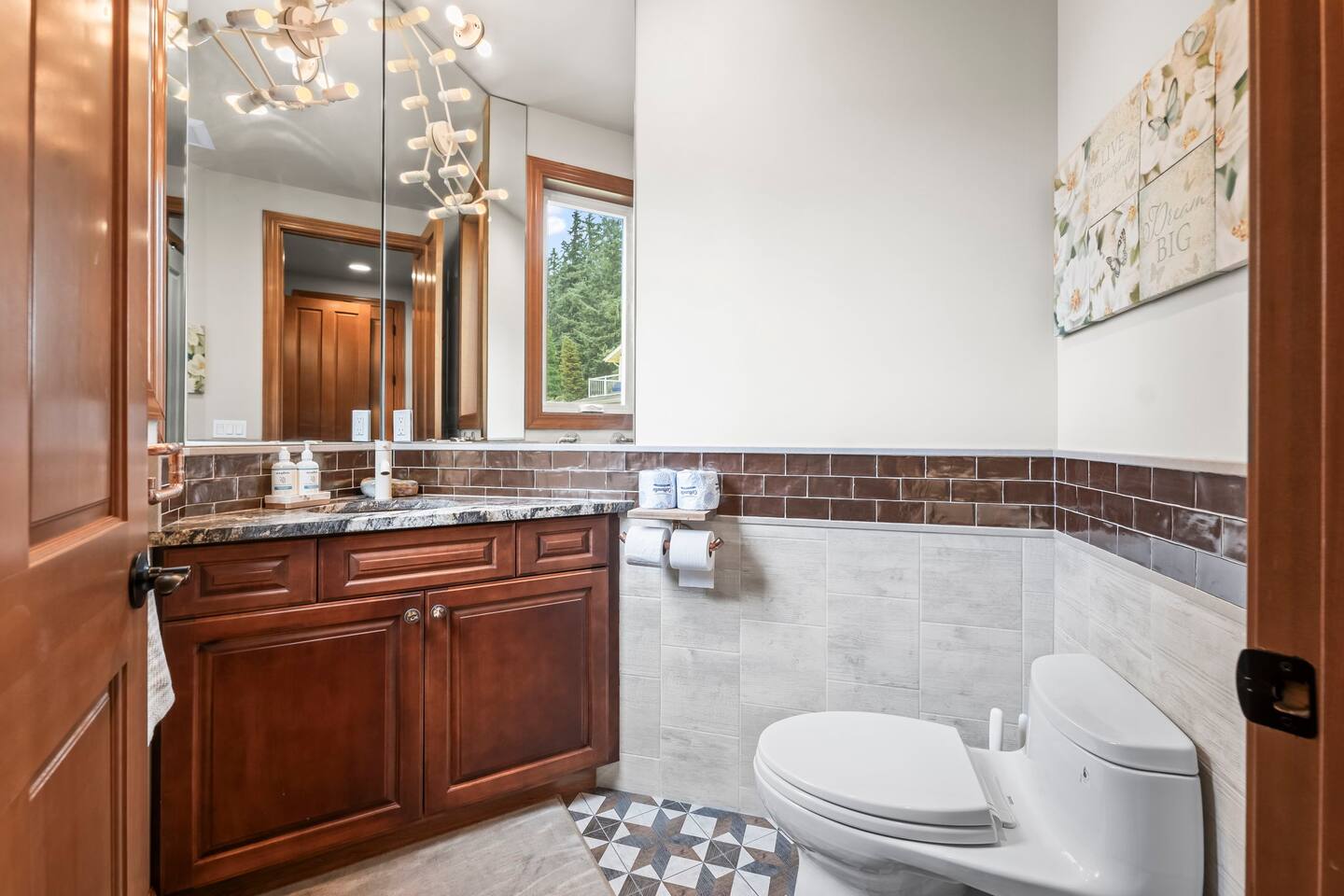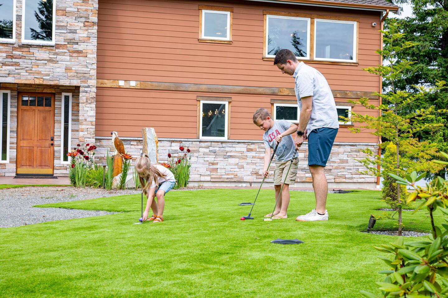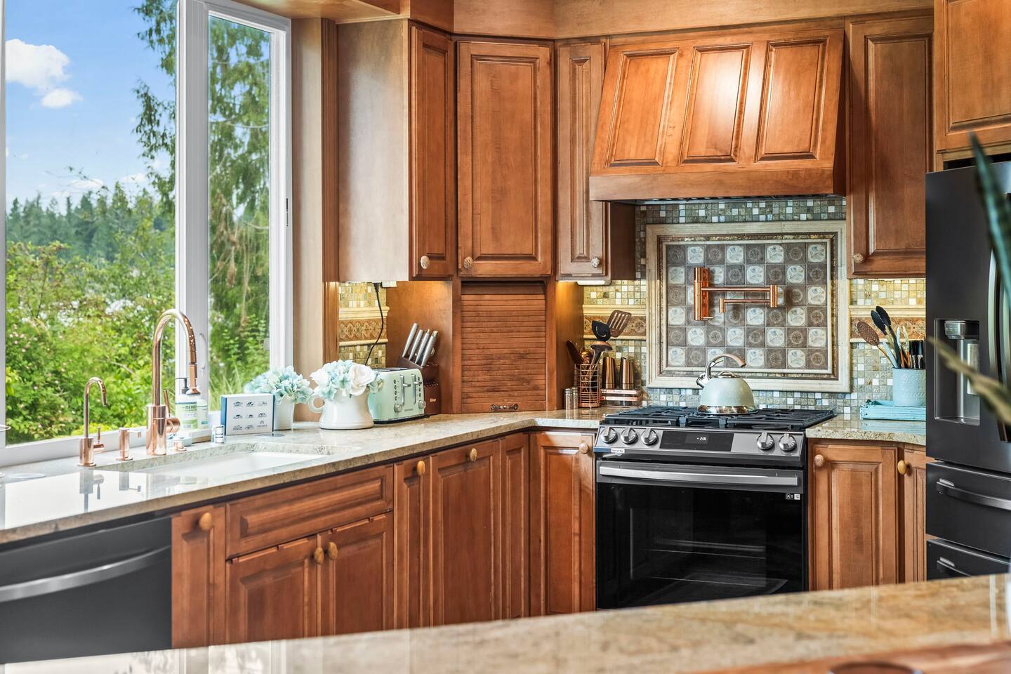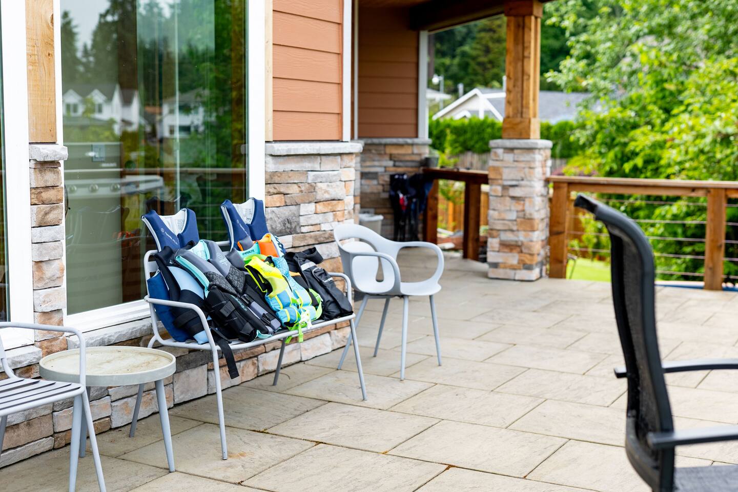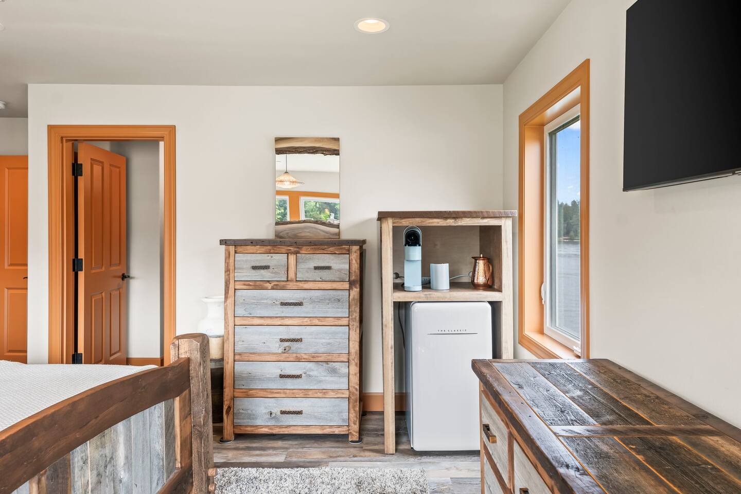Relax and recharge in this thoughtfully crafted 2022 lodge where nature, luxury, and functionality come together. • 3 California King Suites – Spacious bedrooms with ensuite baths and custom touches • Murphy Bed in the Loft – Easily folds down for extra sleeping space • Lake-View Deck + Private Dock – Step out for coffee, a paddle, or just to soak in the view • Gas Fireplaces – One in the main living area and another in the primary suite for cozy evenings • 7 Smart TVs – Stream your favorites with ease in every room • Handcrafted Furniture + Local Art – Featuring copper accents inspired by the area's hawks • Fully Equipped Chef’s Kitchen – Stainless steel appliances, island seating, and all essentials • Second Kitchenette Upstairs – Great for morning coffee or evening drinks • Individual Coffee Stations – One in each bedroom for extra convenience • Central A/C + Whole-House Generator – Comfort and peace of mind in all seasons • Washer & Dryer on Each Floor – Ideal for longer or multi-family stays • Free Parking for 4 Vehicles – Includes easy access driveway and ramp entry • Wheelchair Friendly Home – Wider doorways, ramp, no-step entry, and walk-in shower Family-Ready Features • Grill Station – Fire up the BBQ for a lakeside feast • Lake Gear – Launch your paddle board or kayak from the private dock • Indoor/Outdoor Living – Designed for year-round connection with nature Wheel Chair Friendly • Main floor is completely wheelchair friendly, including the front entry which has no steps • The main floor bedroom and bathroom has a wheelchair friendly shower/tub • There are ramps to get to the backyard in a wheelchair as well BED CONFIGURATION • Bedroom 1 - California King size • Bedroom 2 - California King size • Bedroom 3 - California King size • Loft - Queen size and 2 toddler beds ☀ LAKE ACCESS & LOCAL ADVENTURES ☀ • Right on Lake Sawyer – Swim, paddle, or fish just steps from your deck • Black Diamond Bakery – A beloved local gem for breakfast or pies • Flaming Geyser State Park – Great for tubing, picnicking, or a scenic hike • Crystal Mountain & Mt. Rainier – Easy day trips for skiing, hiking, and alpine views