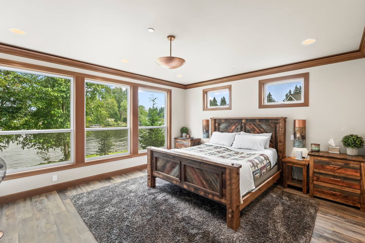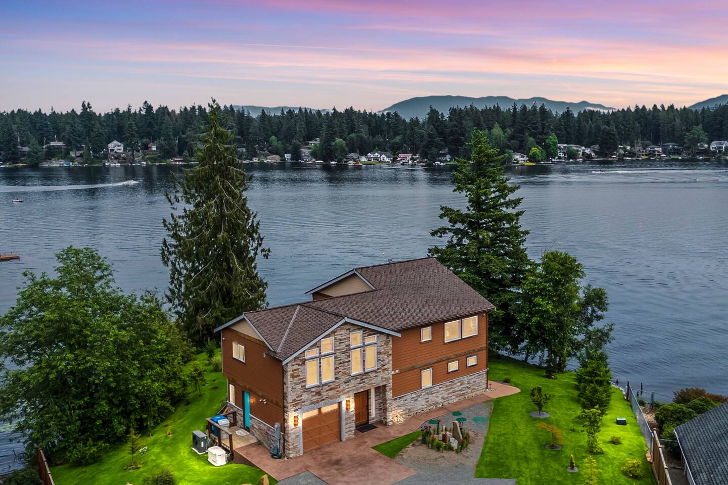 Copper Hawk is a new custom-built lakefront retreat on Lake Sawyer. The home is on a peninsula of the lake, surrounded by water on 3 sides for beautiful views out every window! Bring your boat, use our paddle boards, and just enjoy the views all year long. We have three king bedrooms + a queen bed in the loft making it ideal for you to come enjoy the lake with friends and family!